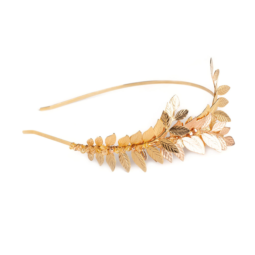 Allow the graceful whispers of leaves to dance playfully and adorn your beautiful locks with a touch of refined elegance. Plated in the luxurious sheen of 24-karat gold and rose gold, this exquisite jewel is further embellished with a delicate sprinkling of sunny topaz, silk, golden shade, metallic gold, and rose gold Austrian crystals.