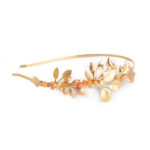 Introducing a captivating headband inspired by the grace of nature, weaving an enchanting tapestry with shimmering golden leaves.