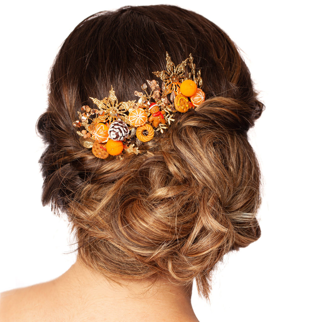 This meticulously crafted comb is more than just a hair accessory; it's a work of art that captures the essence of the season. With its blend of organic elements and luxurious details, this handmade comb promises to infuse any hairstyle with a touch of holiday magic, making it a delightful addition to your festive ensemble or a thoughtful gift that spreads joy and elegance.