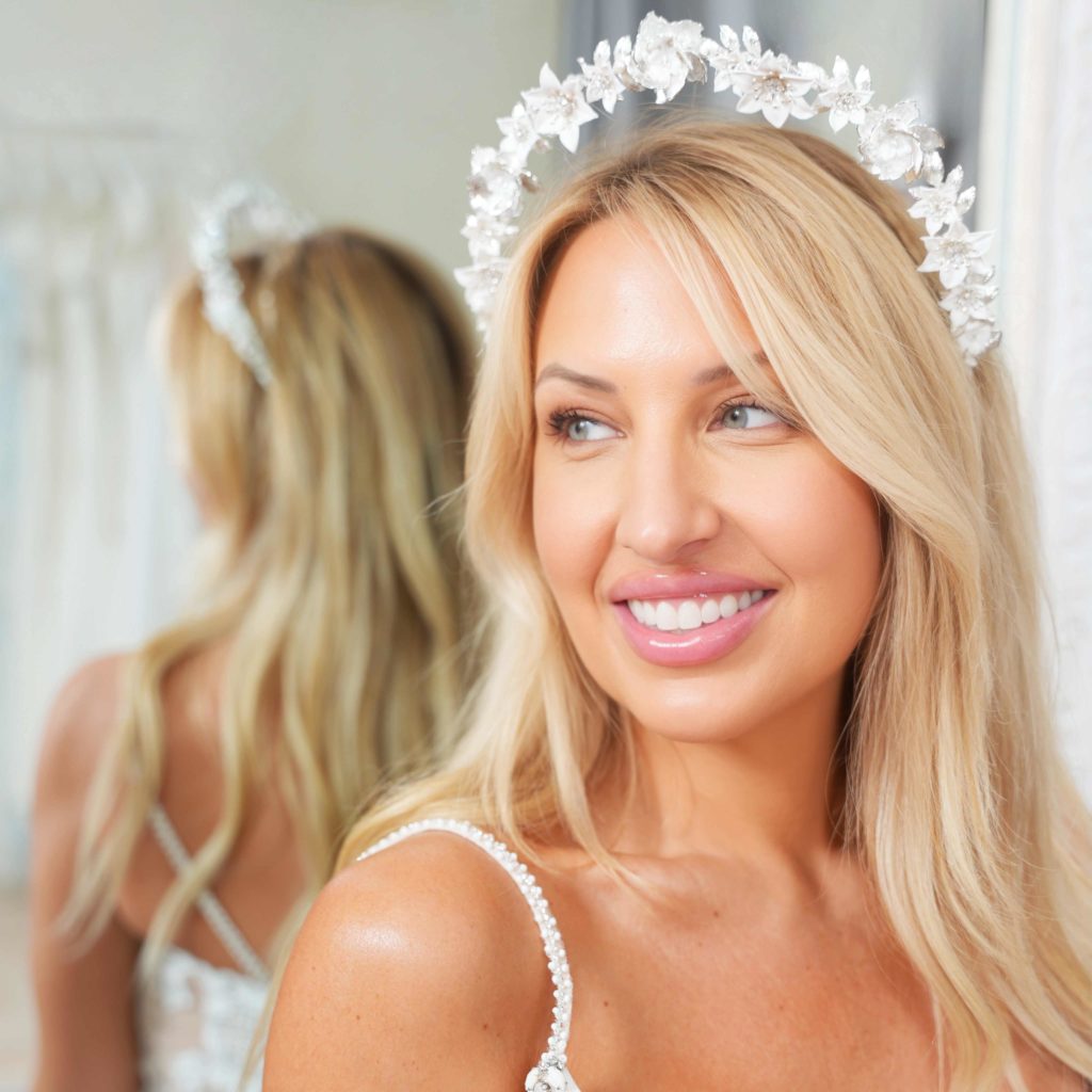 Opt for the ethereal goddess look with the pure white lilies or bedazzle it further with crystals, flowers, and pearls—a bespoke piece tailored to your desires. Contact me to explore the menu of possibilities and let your dreams of an irresistible, enchanting halo come to life.