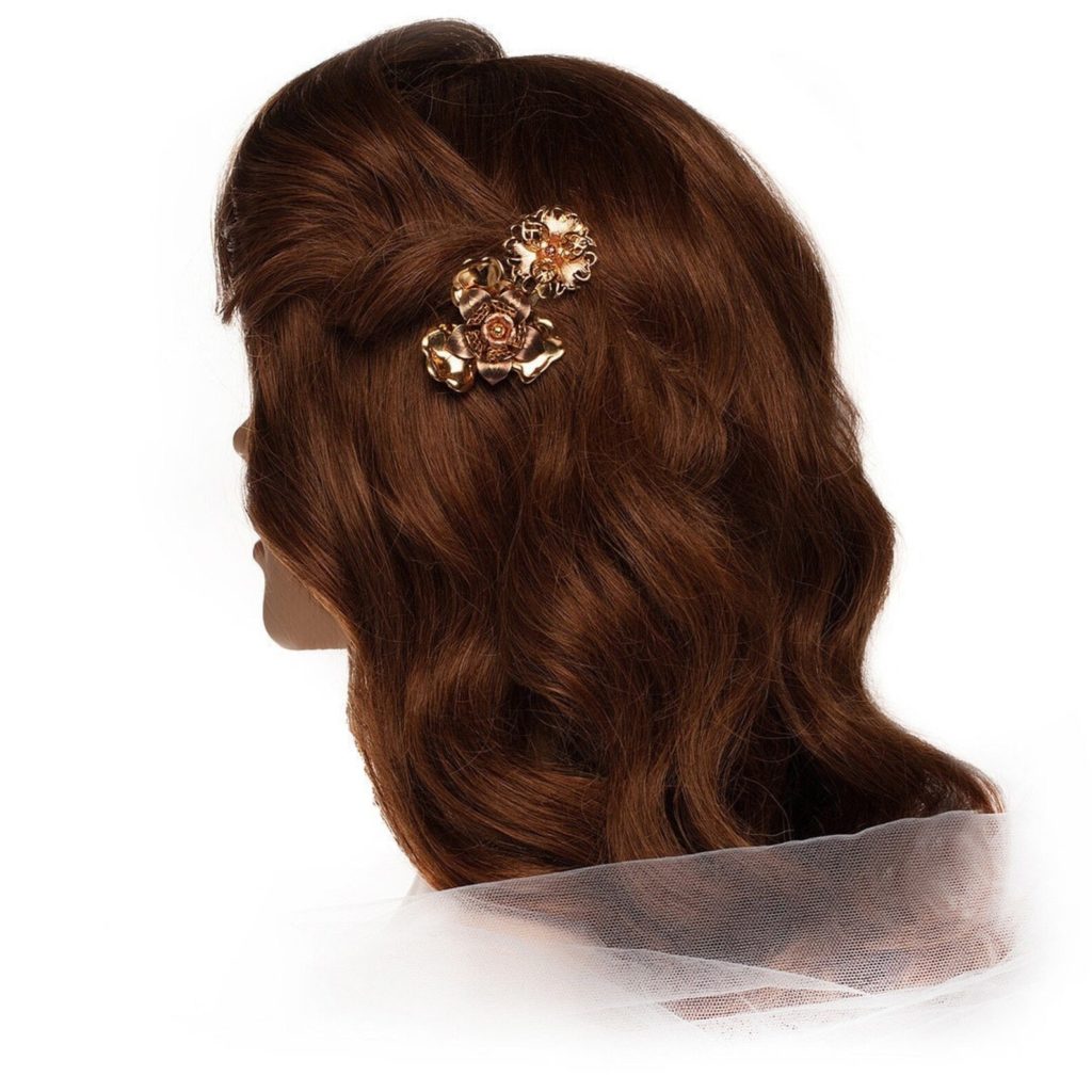 Nestled within these elaborate blooms are rose gold and gold-plated lava stones, imparting a touch of sophistication and warmth. The fusion of these luxurious materials creates a captivating blend of hues and textures, ensuring that this barrette stands out as a unique fashion statement.