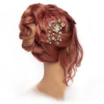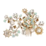 Introducing the Pastel Blue Comb, an ethereal arrangement where sparkling crystals twirl alongside pastel blue gems and pearls, crafting a mesmerizing display of light and elegance. At its core, 24-karat gold-plated flowers and artisan-crafted Deco-clay lily combine to evoke a sense of otherworldly charm, making it an exquisite addition to any bridal ensemble.