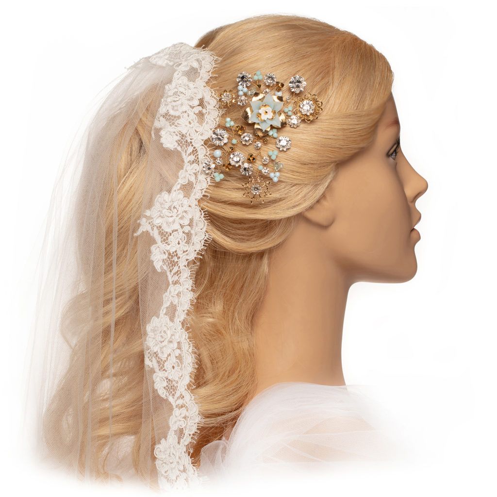Embrace the tradition of "something blue" and infuse your wedding celebration with a touch of elegance and meaning. The Pastel Blue Comb captures the essence of natural beauty and sophisticated design, making it a perfect addition to your bridal accessory collection.