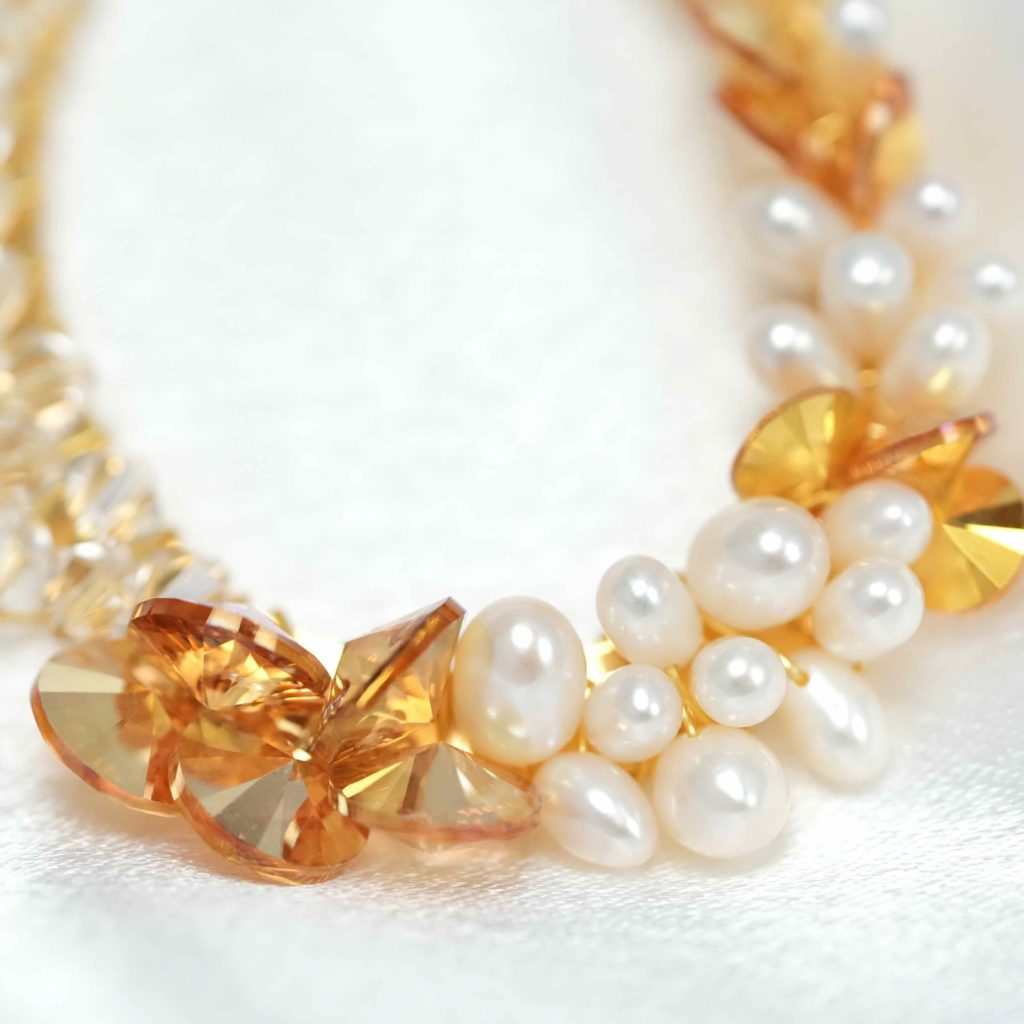 Radiating sophistication, these earrings feature exquisite Austrian crystals and rivolis, harmoniously paired with lustrous freshwater pearls.