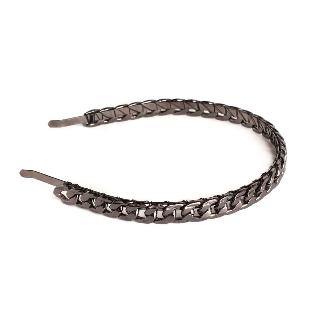 Meet the Urban Edge headband – an edgy and substantial accessory that commands attention. This headband features a gunmetal gold-plated thick chain, meticulously hand-wired onto a gunmetal-plated base. The hand-wired construction allows for flexibility and stretch, enabling you to expand and adjust the headband to your comfort. Unlike soldered or glued alternatives, this headband is built to last, promising durability for years to come.