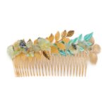 Complete with a meticulously handcrafted greenish-blue patina leaf, this comb epitomizes timeless beauty and grace. Each comb is a true original, with subtle variations that render every piece as distinctive as its wearer—a testament to the individuality celebrated in nature's creations.